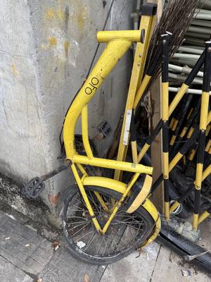 我前几天也在我家附近看到过ofo的残骸,上古遗骸🤣🤣